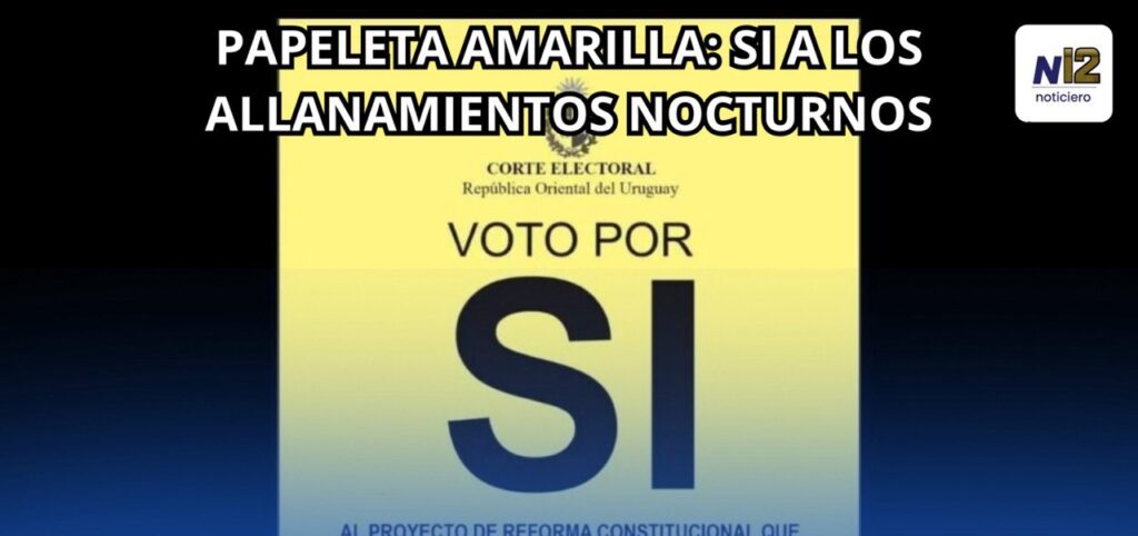 El proyecto busca reformar el artículo 11 de la Constitución de la República para que se permitan a la Policía realizar allanamientos nocturnos con la orden de un juez. Se puede votar afirmativamente por este plebiscito introduciendo la papeleta amarilla en el sobre de votación.