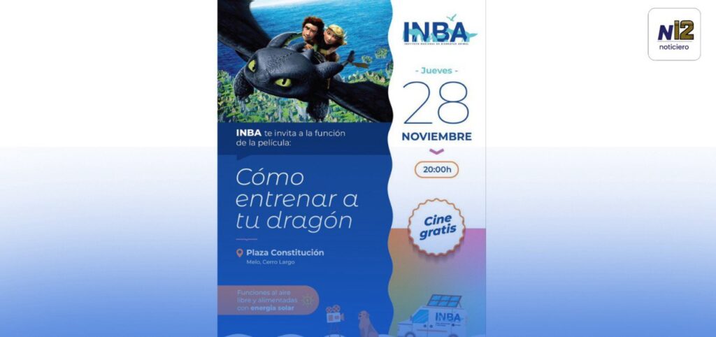 INBA organiza una serie de proyecciones de cine gratuito en varias ciudades de Cerro Largo, exhibiendo la película “Cómo entrenar a tu dragón?