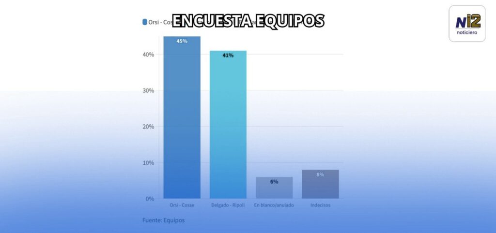 Según los datos presentados en Subrayado (Canal 10), el 45% de los uruguayos se inclinaría por Orsi y el 41% por Delgado. Un 6% señaló que votará en blanco o anulado y el restante 8% está indeciso.