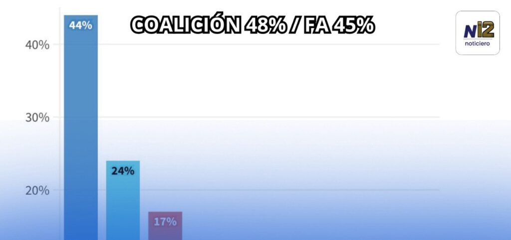 Según estos números, el 48% se inclinaría por los partidos que actualmente integran la coalición de gobierno: Partido Nacional, Partido Colorado, Cabildo Abierto y Partido Independiente.